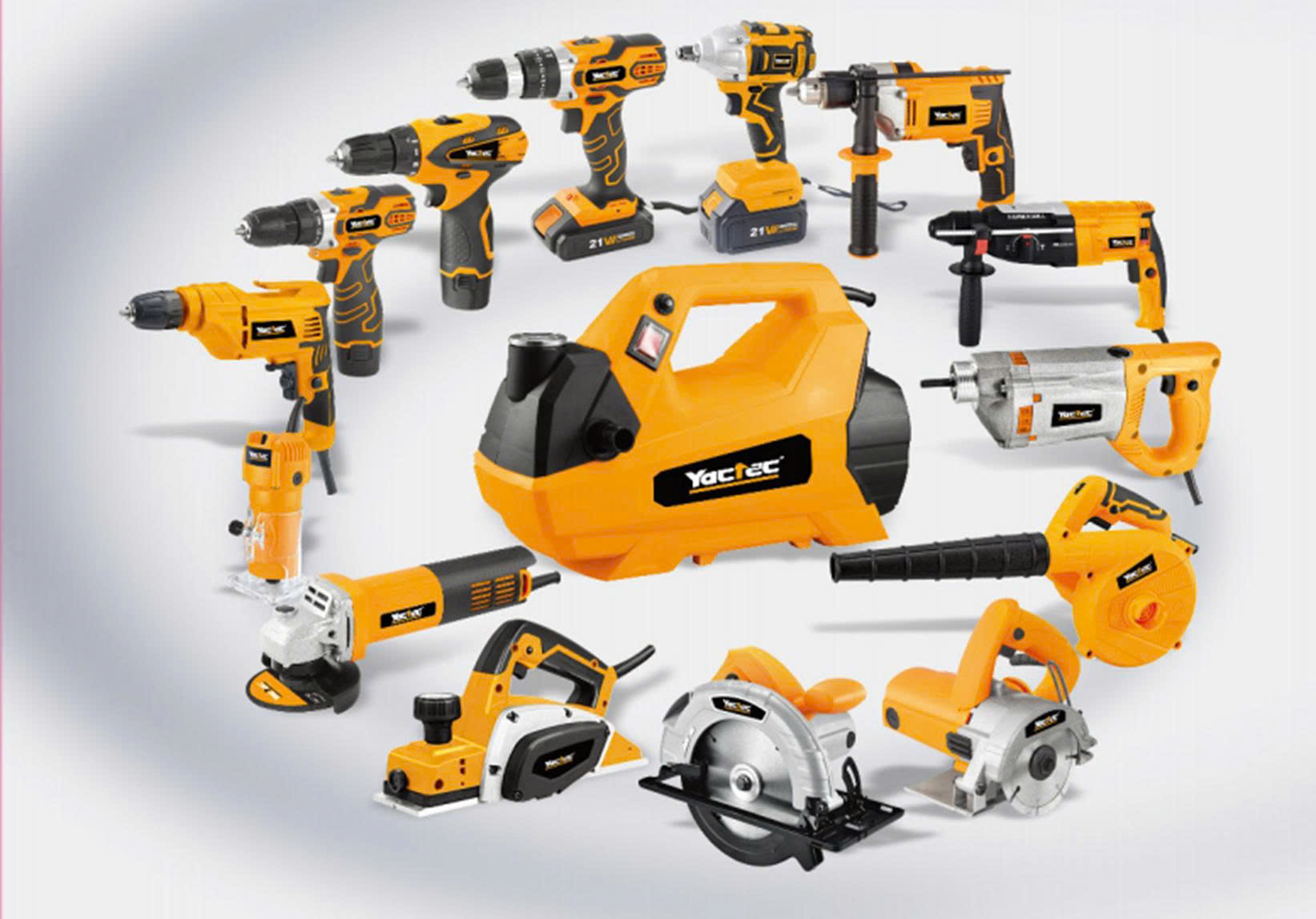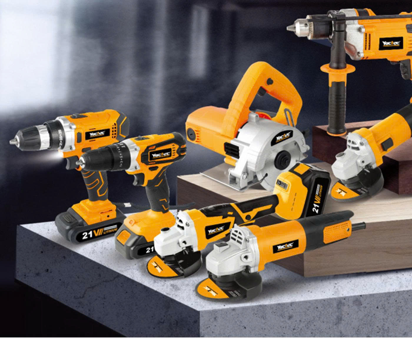Dụng cụ điện bao gồm máy mài góc, máy khoan, máy khoan không dây và dụng cụ làm vườn.